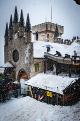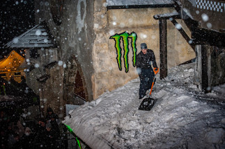 El Castillo Mágico es un lugar que se construyó inicialmente como un parque para niños, pero que a día de hoy es un club de swingers y evidentemente también sirve de snowpark de Ethan y sus amigos, ¿qué sino? La primera sesión del viernes se organizó por los techos del castillo. Los riders saltaban la torreta antes de entrar al quarter para luego seguir en el wallride/ tejado y acabar en una pared a drop a otro tejado o al suelo... Si no entiendes nada, tranquilxs, que nosotros tampoco, y estábamos allí.